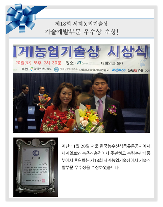 제18회 세계농업기술사 기술개발부문 우수상 수상 페이지 정보 작성자 류충현약용버섯 작성일12-12-28 13:25 조회1,869회 댓글0건 관련링크 본문 류충현약용버섯이 제18회 세계농업기술사 기술개발부문 우수상 수상하였습니다. 목록
